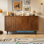 Dengan beberapa pintu kabinet yang luas, **credenza kayu** ini menawarkan ruang penyimpanan yang besar untuk berbagai barang, mulai dari peralatan makan, buku, dokumen, hingga koleksi dekorasi. Bagian atas credenza dapat berfungsi sebagai tempat meletakkan televisi, lampu hias, bingkai foto, atau tanaman, menjadikannya sangat serbaguna.