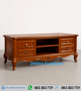 Jadikan Meja Bufet TV Kayu Jati Modern ini sebagai pusat perhatian di ruang keluarga Anda. Kunjungi delimagurniture.com untuk informasi lebih lanjut dan penawaran terbaik!
