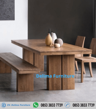 Spesifikasi Set Meja Makan Kayu Jati Natural Bangku Panjang