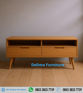 Meja TV Kayu Minimalis Scandinavian dari Delima Furniture dengan desain elegan dan fungsional.