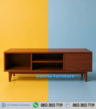 Meja TV Minimalis Modern Kayu dari Delima Furniture dengan desain elegan dan fungsional.