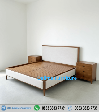 Desain Ranjang Minimalis Kayu Solid Headboard Busa